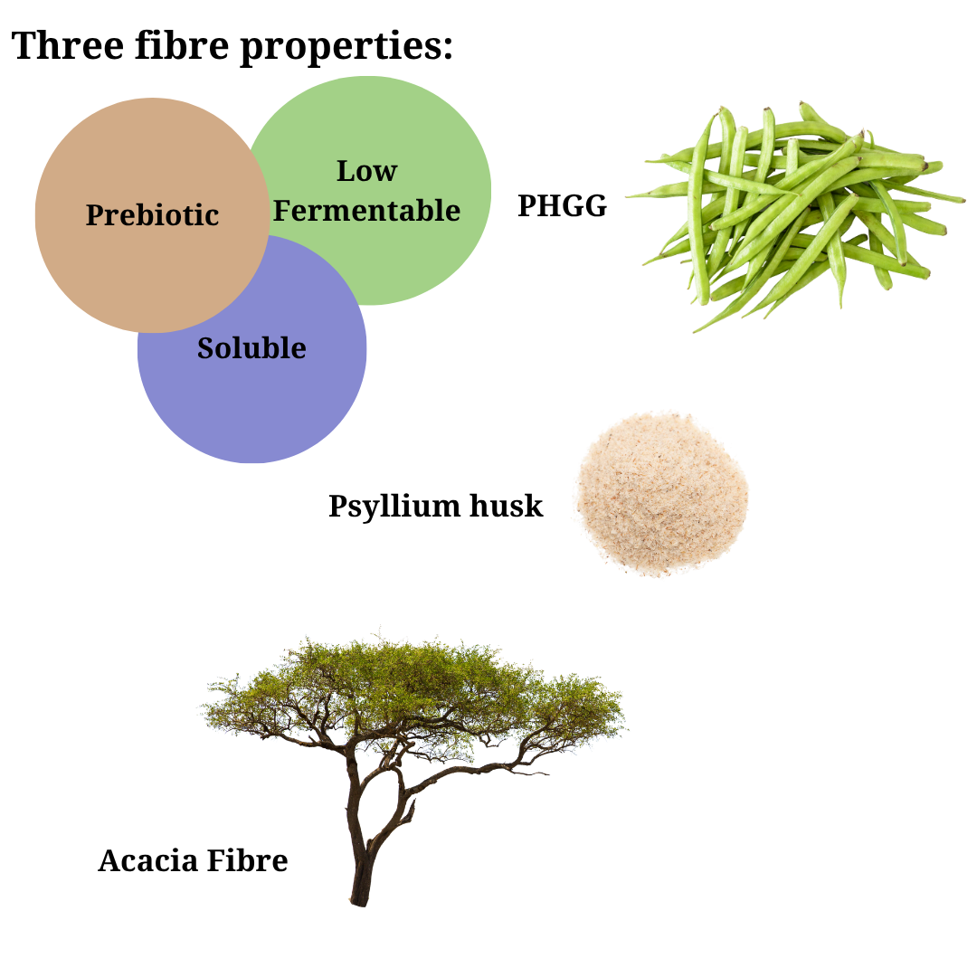 Together, these three fibres complement each other by combining gel-forming, soluble bulking with prebiotic effects.